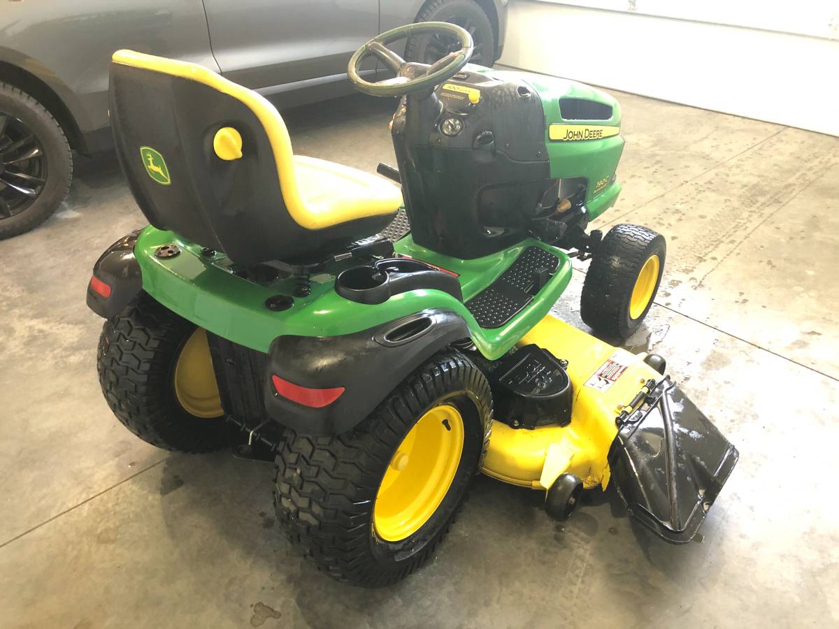 With a powerful 25 HP twin cylinder engine and a giant metal 54 inch deck, the John Deere 190C is the largest tractor style available. This is a dealer model, so you won’t have to think about any of the little plastic bits; instead, you’ll get a fully constructed steel deck and a larger, heavier-duty steel frame. It also has bigger front and rear tires, as well as a high back seat with lumbar support and a comfort grip steering wheel. It also has hydrostatic forward and reverse pedals, which eliminates the need for gears, as well as a push-button PTO blade engage, making this mower extremely user-friendly. This mower is made to last and will be dependable for a long time, and the back tires appear to be brand new. Thank you for taking the time to look.