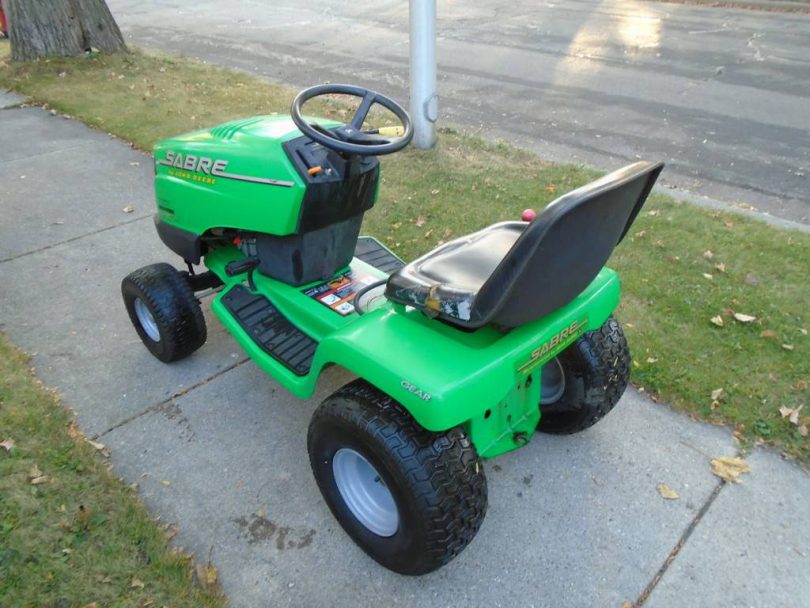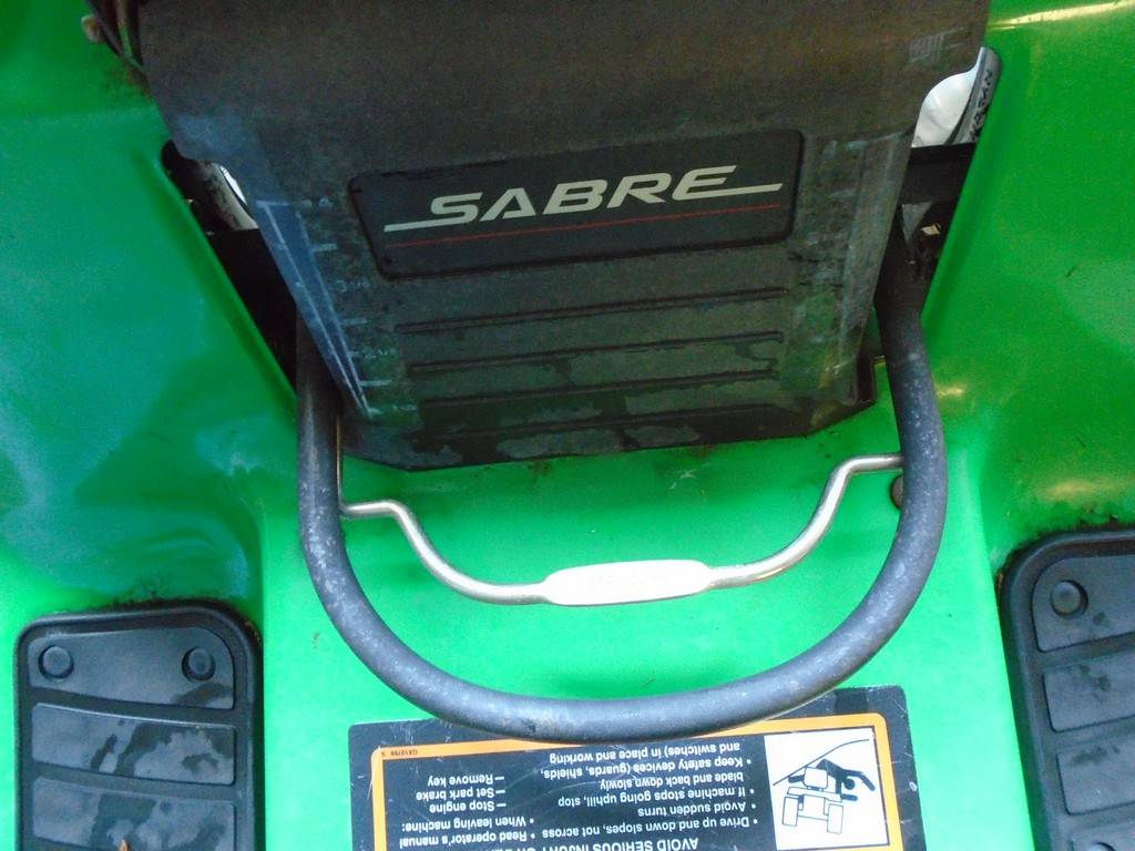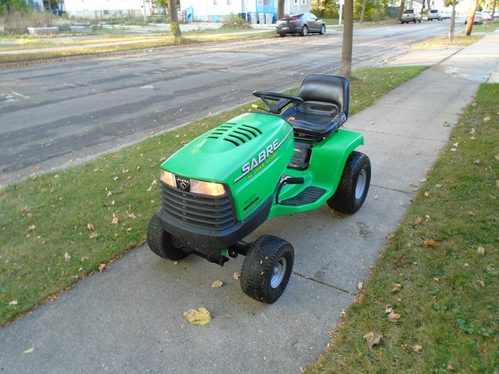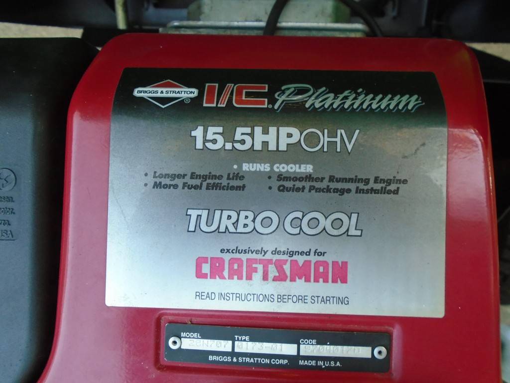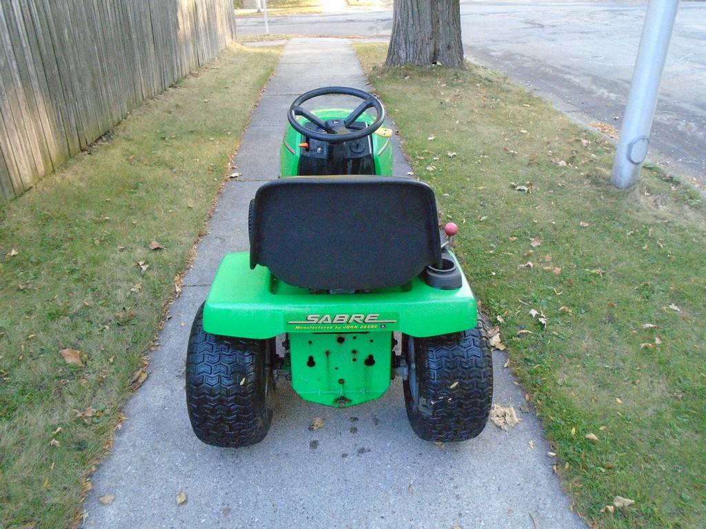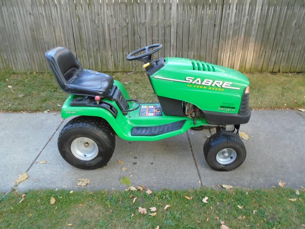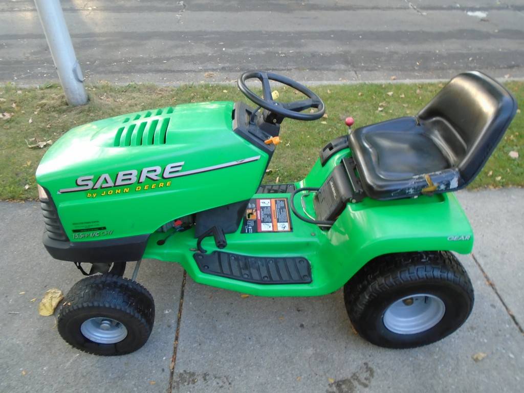 15.5 hp John Deere Sabre riding lawn tractor mower No deck, no gear shift. With a 15.5 HP Industrial/Commercial Briggs and Stratton engine that has been rebuilt. Internals, gaskets, and seals have all been replaced. Oil and filter, air filter, fuel filter, and gas shut off valve are all included. It starts, idles, and runs smoothly. There are no oil leaks, and it does not smoke.