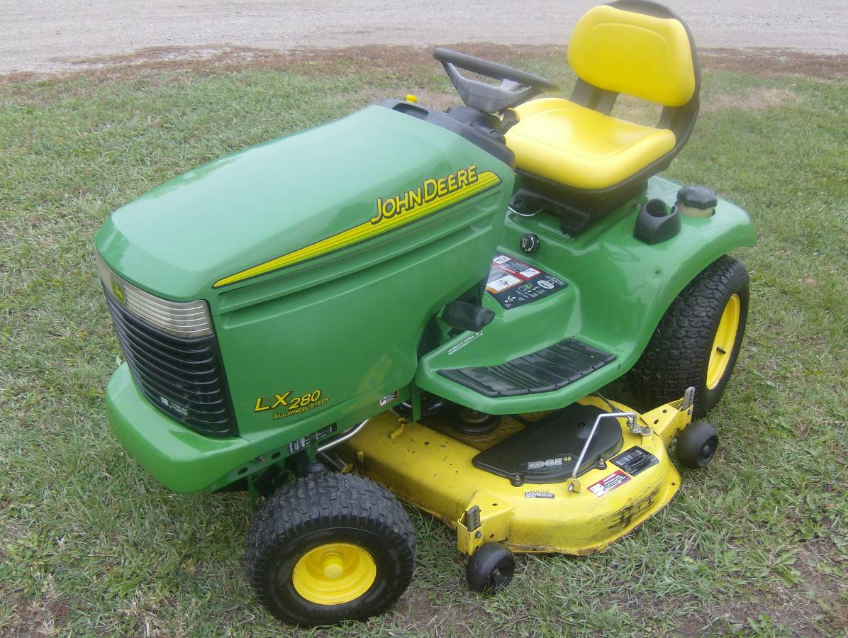 This 2005 JD LX280 All-Wheel-Steer lawn mower with a 48 inch deck is available for purchase. It comes with an 18 horse Kawasaki V-Twin engine and hydrostatic foot controls. The mower has a new seat and new front tires that were replaced 2 years ago. The battery is less than 3 years old and in good condition. The blades were replaced at the beginning of this season and may need some touching up. All maintenance records are available since the mower was new. It has only been used for 291 hours, which is just breaking it in for a John Deere. This mower is more versatile than a zero-turn and almost as maneuverable. The price is firm at $2000.