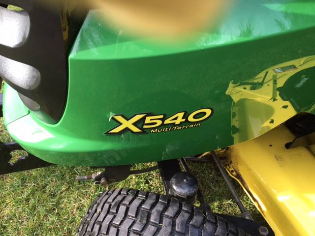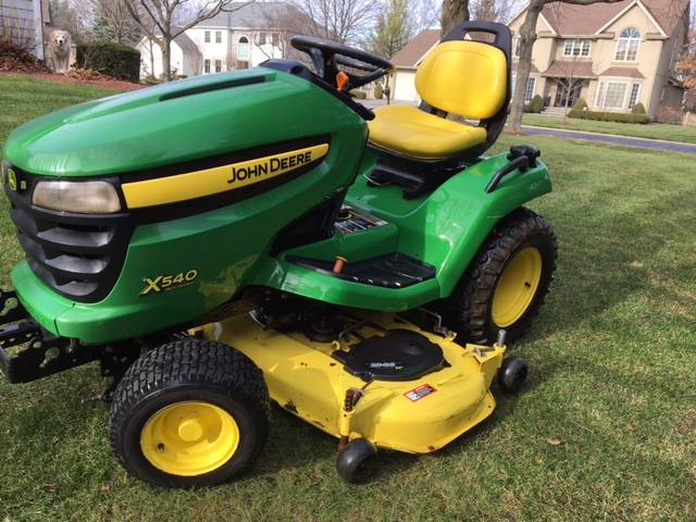 A John Deere x540 with a Kawasaki 26 Horsepower liquid cooled engine and a 54-inch deck is available for sale.