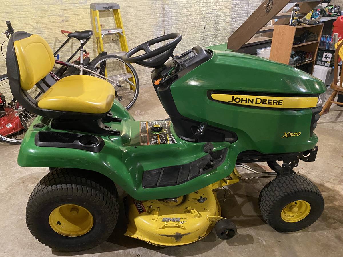 2011 John Deere X300 Lawn Mower for sale. Comes with a 42″ mowing deck and mulching kit. Has been used for 382 hours and is in great condition. I am the original owner and have regularly serviced it. There are a few scratches and a small tear on the seat. Asking price is $1500.