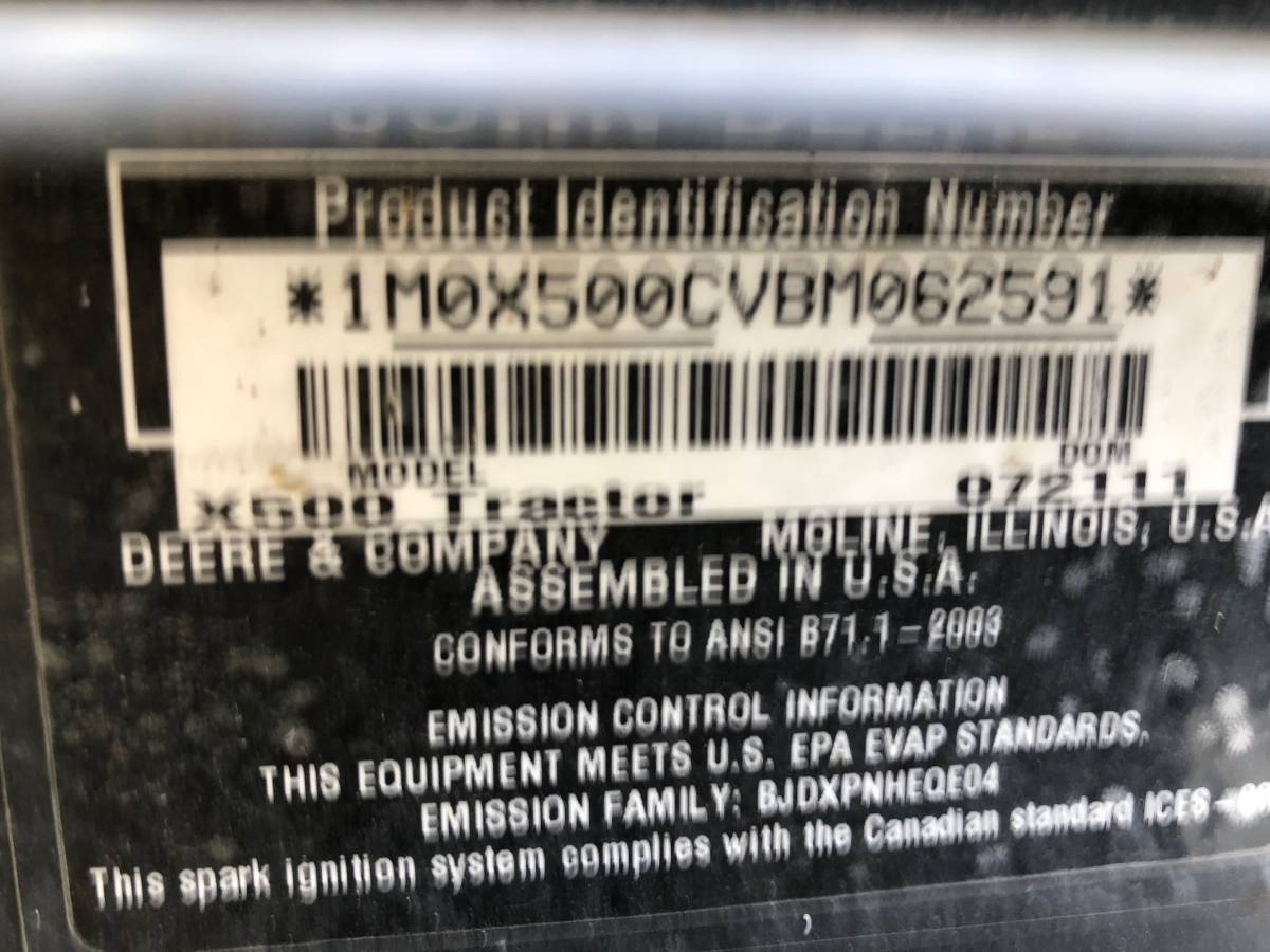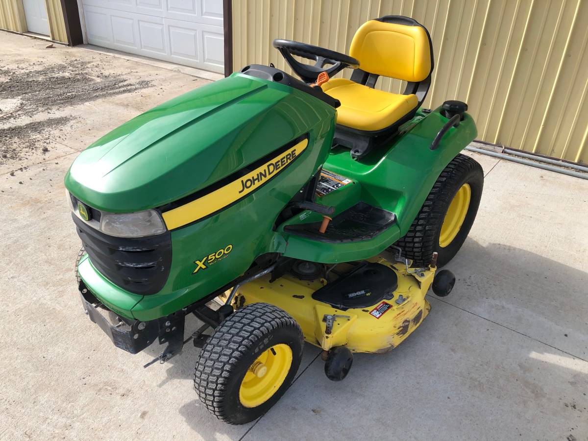 2011 John Deere X500 lawn mower 48 in deck power steering, 885 hours, 25 hp Kawasaki engine, fresh blades, oil and filter just adjusted, completely serviced and ready to cut the grass. The X500 does have an electrical PTO-style clutch that is easy and safe to use. This device is very robust and can withstand the pressure of multiple stops and restarts during your lawn-cutting cycle. One function that helped us maneuver in those tight spaces was a combination of unit stats and hydraulic power steering. The heavy sector and pinion steering system would make it almost effortless to turn and maneuver the machine around the objects. $2900 firm Can deliver within 200 miles for $1.75 a mile.