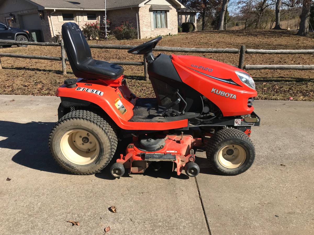 I have a very nice clean used 2012 Kubota GR2120 riding lawn tractor for sale. It is powered by a 3-cylinder Kubota diesel engine. It starts right up, cuts, and works flawlessly. It has power steering and a deck lift, as well as hydrostatic drive. It has approximately 650 hours on it. It has a 48″ heavy duty welded cutting deck. It starts right up, cuts, and works flawlessly. It is ready to use right now. Please message me if you have any questions about it. I may consider partial trades of atvs and utvs, as well as partial trades on your old mower, working or not.