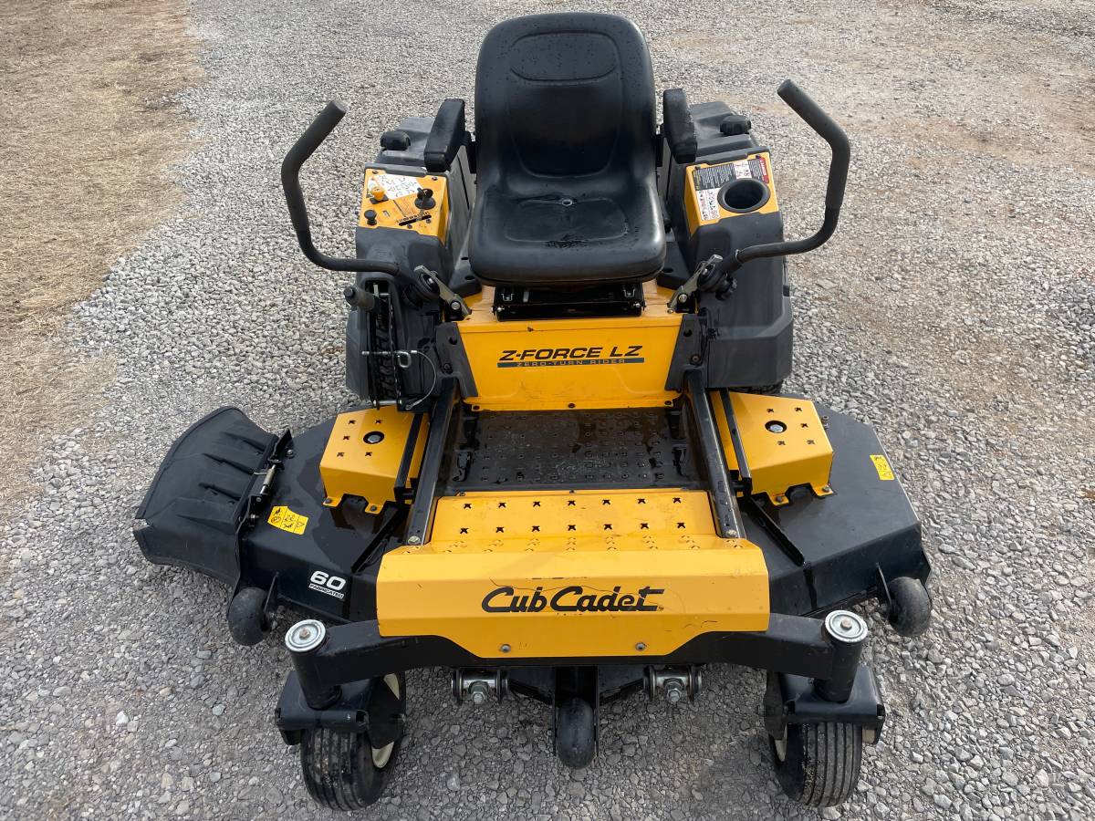 Cub Cadet LZ60 zero turn lawn mower, 2014. 203 hours. Kawasaki 24hp vtwin motor. 60” deck. The L 60 tank’s mower deck is 60 inches wide. The deck is constructed of fabricated 10 gauge steel with 7 gauge steel sections for strength and rigidity. A spring-assisted dual pedal system raises and lowers the deck. This enables the operator to raise it by up to 4 inches, from a low of 1 inch to a high of 5 inches above the ground. Because the height adjustments are so small (0.25 inches), you should always be able to find a cutting height that works for you. The deck is floating, but it is equipped with anti-scalping gauge wheels, so it will follow the contours of the ground. Rear tyres have been replaced. A sturdy mower. Prepared to mow the grass or chop the leaves