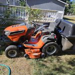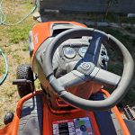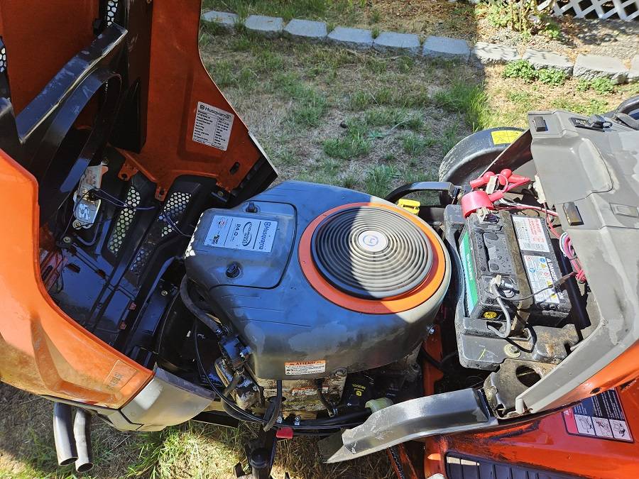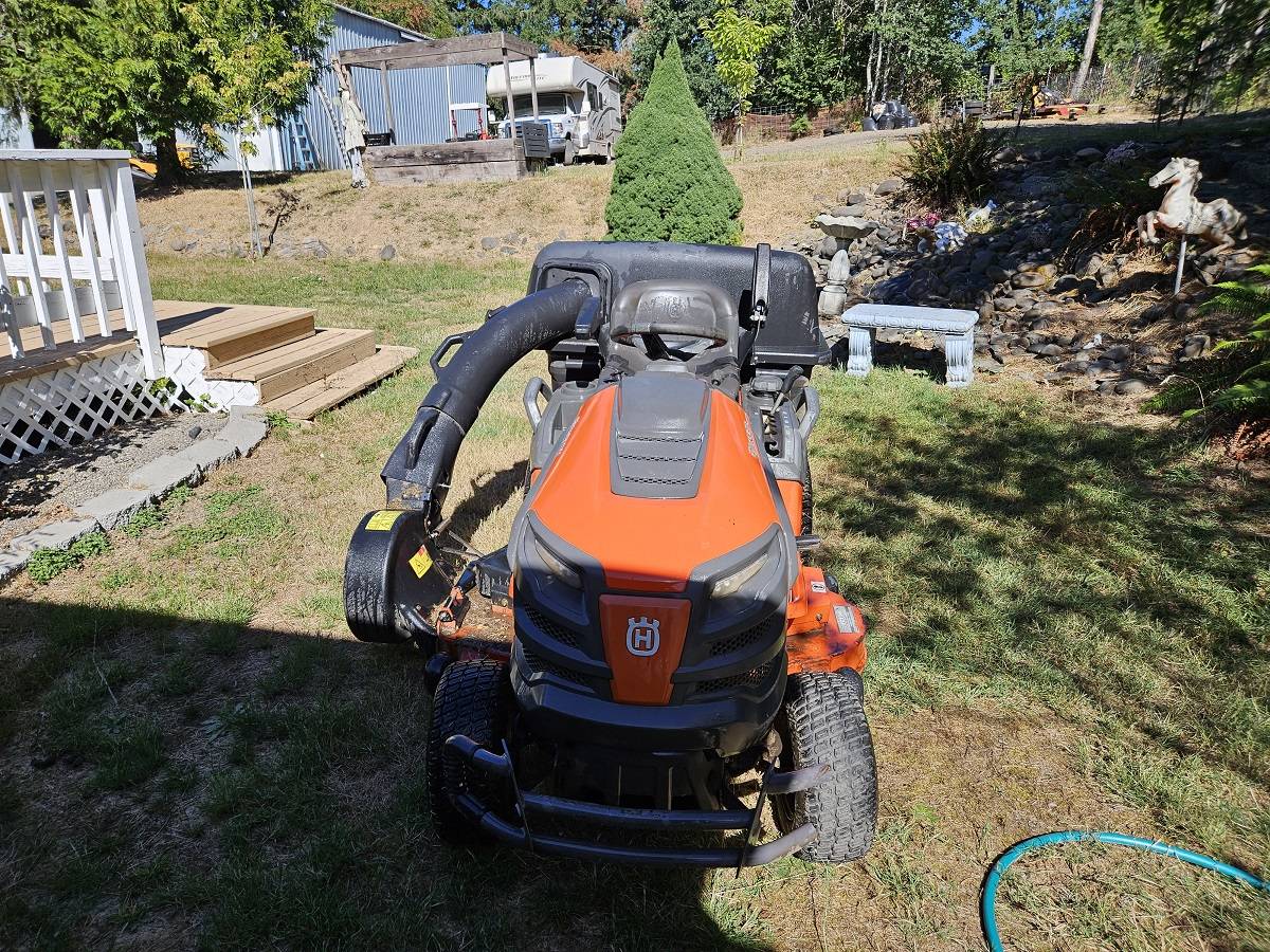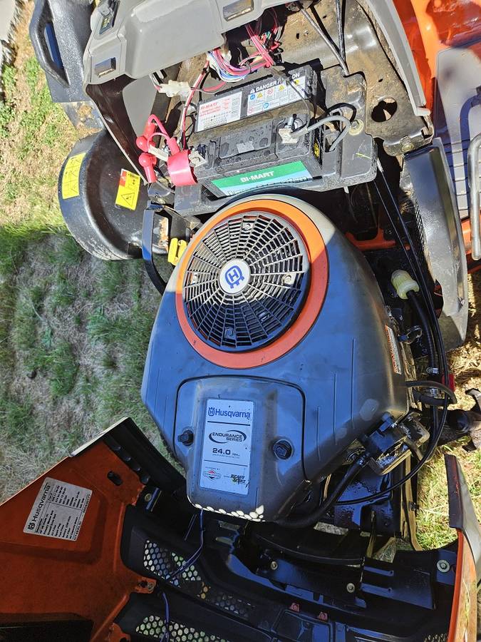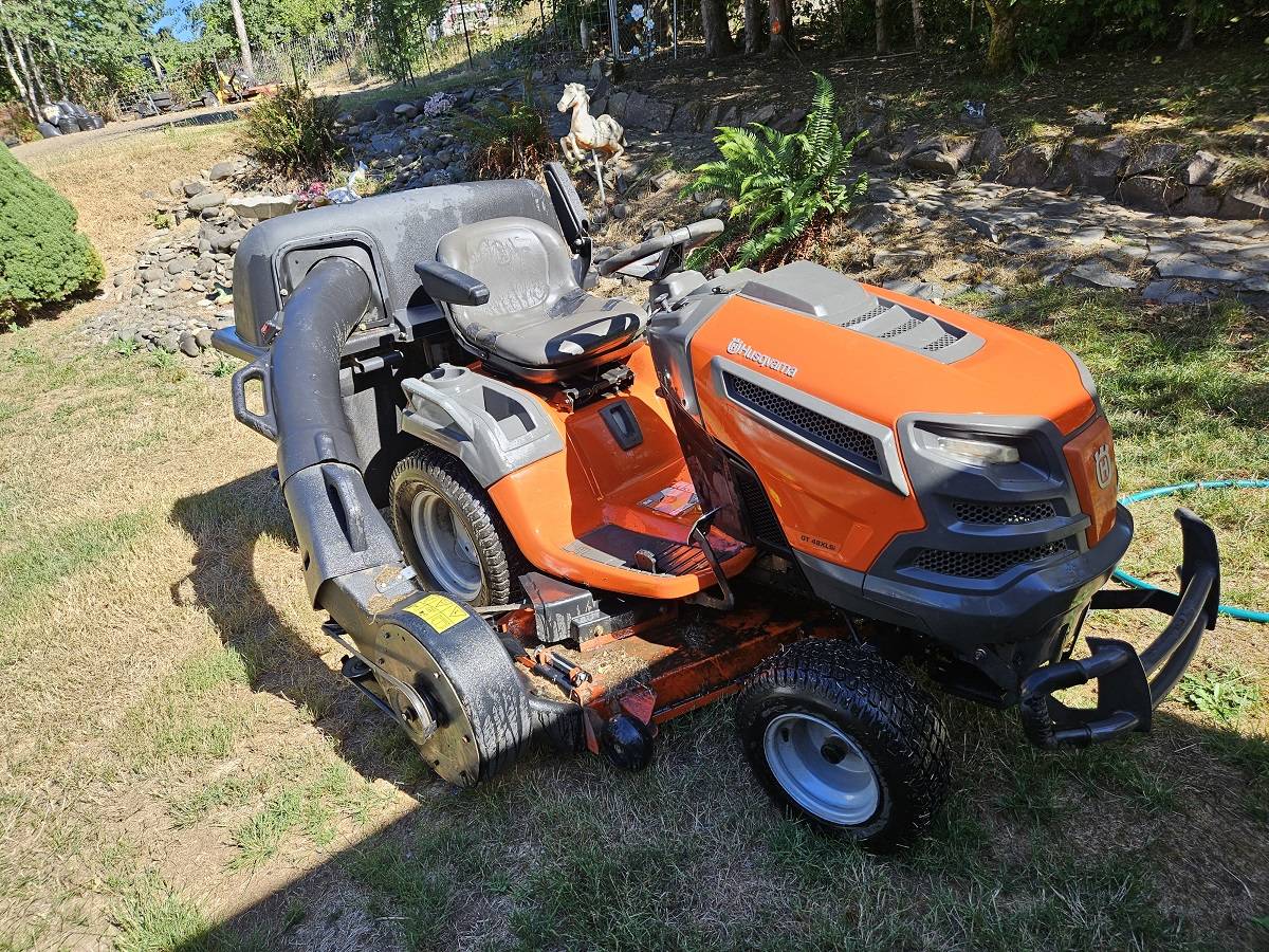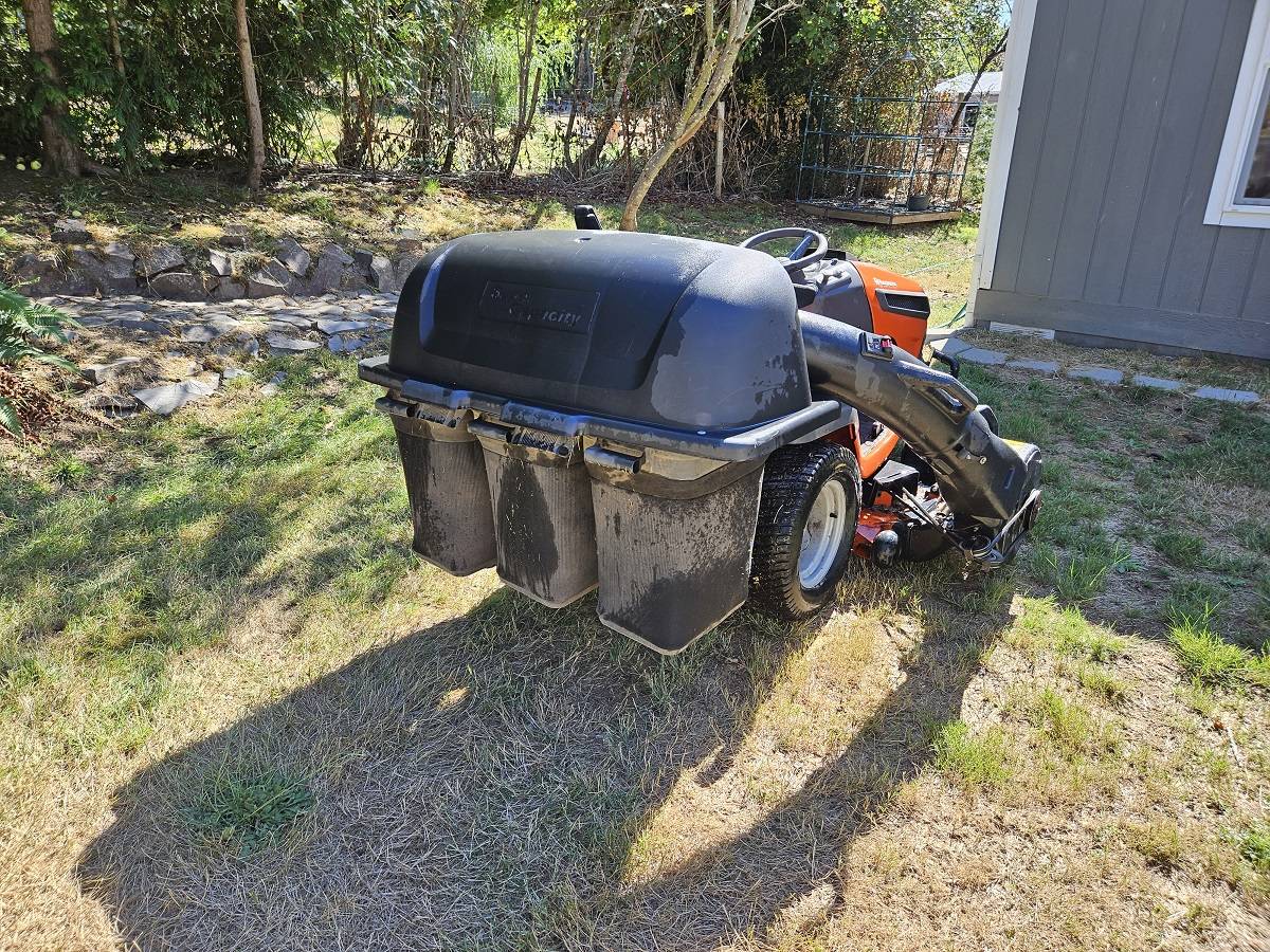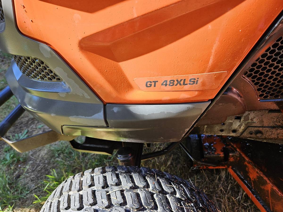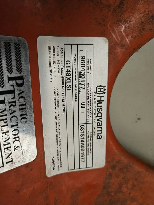 Available for purchase is a 2014 Husqvarna GT48XLSI Riding Lawn Mower/Tractor featuring a 24 hp Briggs twin motor with 114 hours on the meter. It boasts a heavy-duty 48-inch cutting deck with electric blade engagement and the ability to mow in reverse. The mower has an automatic foot-operated hydro transmission with cruise control and 5 lug rear wheels equipped with electric rear differential locking hubs. Additionally, it comes with a 3-bag grass bagger system and a side blower attachment. The keyless start and reserve gas tank switch add convenience. Recently, the oil, filter, battery, and carburetor have been replaced, and the blades have been sharpened. The mower runs and mows exceptionally well, with good tires that hold air and LED headlights. Every feature on the machine works perfectly.