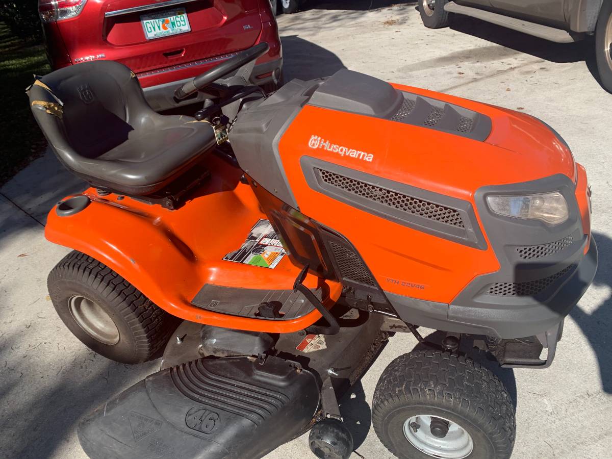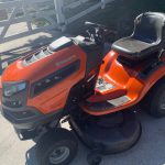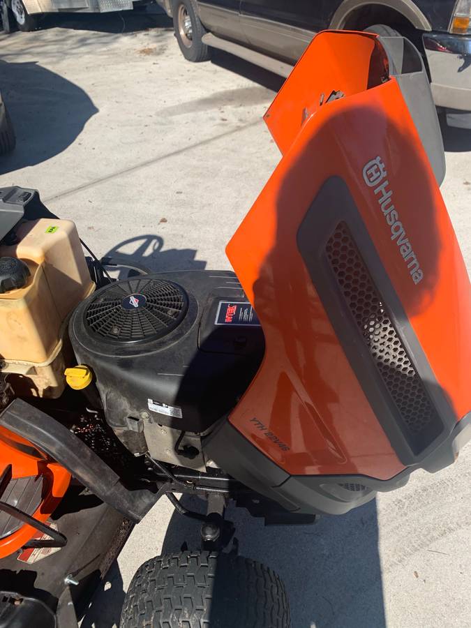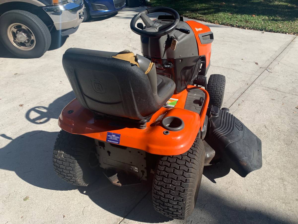 Very nice Husqvarna lawn tractor from 2014. Push the pedal to go forward, harder to go faster, and back up to operate the transmission. Shifting does not require the use of any hands. Turn the key to mow in reverse, and you’ll be able to mow both forward and backwards.
