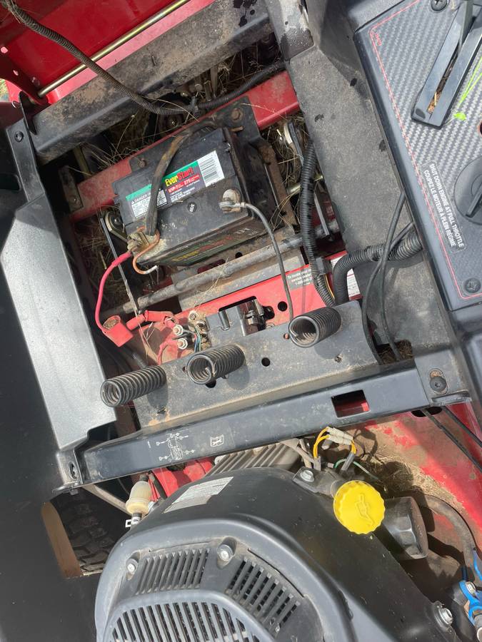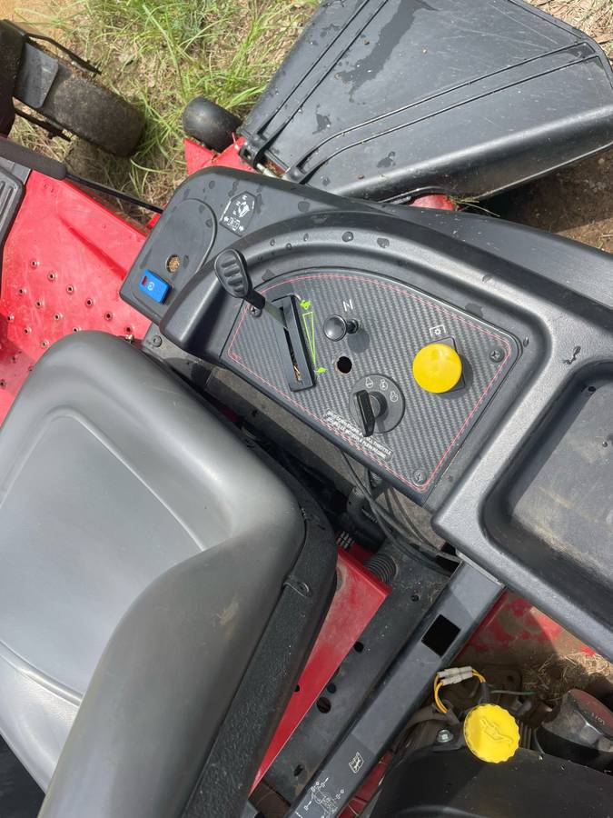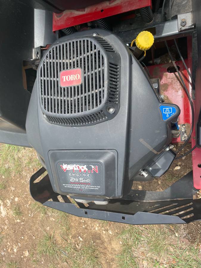Equipped with a high-performance Toro 24.5hp V-twin engine, it ignites effortlessly without any smoke or problems. The carburetor has been cleaned, a fresh tune-up performed, the fuel system flushed, a new fuel filter installed, and the oil changed. It operates and cuts seamlessly. The mower features a speed control foot pedal with automatic braking and an adjustable steering column. The blades, spindles, pulleys, and deck belt are all in good shape, with the deck serviced and leveled. All grease points have been lubricated, and the tires are in like-new condition, holding air well.