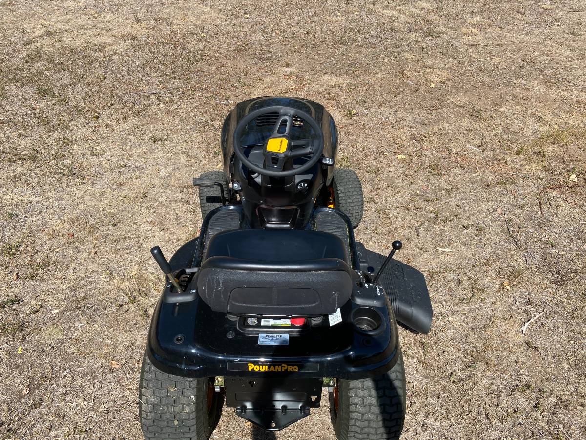 The Poulan Pro PP175G42 riding mower is a versatile machine packed into a compact size, with a 42″ cutting deck, powerful Briggs & Stratton 17.5 HP engine, and fender-mounted, lever-controlled 6-speed transmission. It’s suitable for yards with level, hilly, or rough terrain, and it’s easy to operate thanks to a spring-assisted deck lift with six cutting height positions.