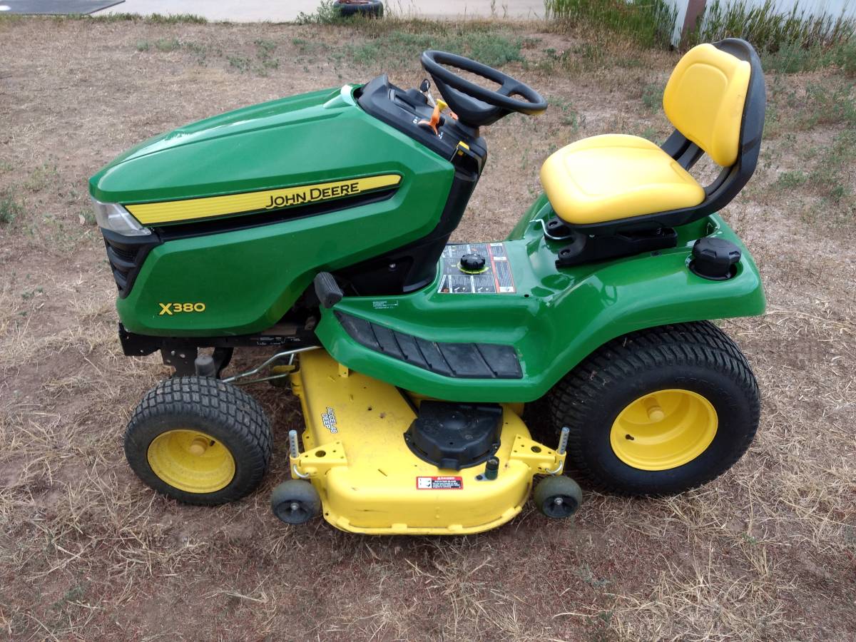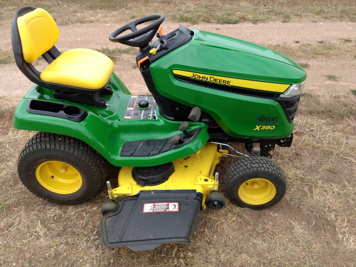I have a nearly new John Deere X380 lawn tractor with a 48-inch Accel mower attachment (2018 model year). I’ve only used the unit a few times and it has 31 hours on it.