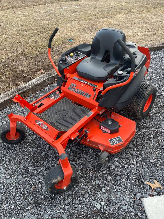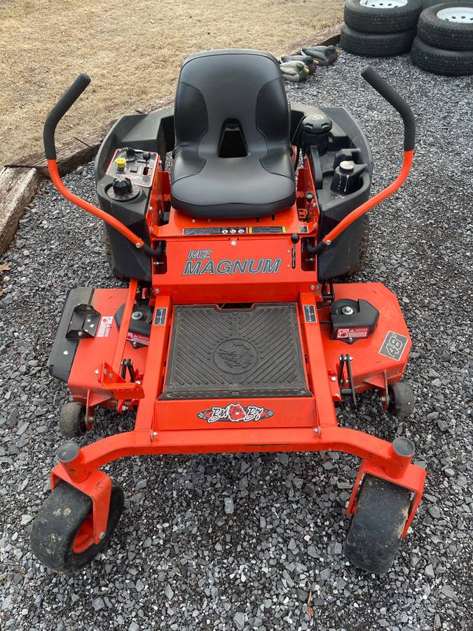 2021 Bad Boy MZ Magnum 48” zero turn riding mower for sale. Mower runs, drives, and cuts like new. It currently has 83 hours on it. Powered by a 725cc Kohler 7000 Series engine (22HP). Fabricated deck, spring-assisted ride seat, and simple spin deck adjustment knob. Spring will be here soon, so take advantage of this lightly used machine and save over $1,000 off a new one.