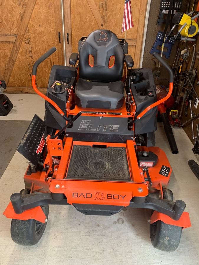 2021 Bad Boy ZT Elite 48” Cut Zero Turn Lawn Mower with a Koehler 7000 725 cc engine. It has 157 hours of use and has had only one owner. The mower has been stored in a garage and all maintenance has been carried out by me. It comes with an extra set of blades, an advanced chute system, and a rear basket. I have recently changed all fluids and filters. The battery has consistently been maintained with a trickle charger when not in use. The mower is in excellent condition, used solely for my personal yard, and has never encountered any issues.