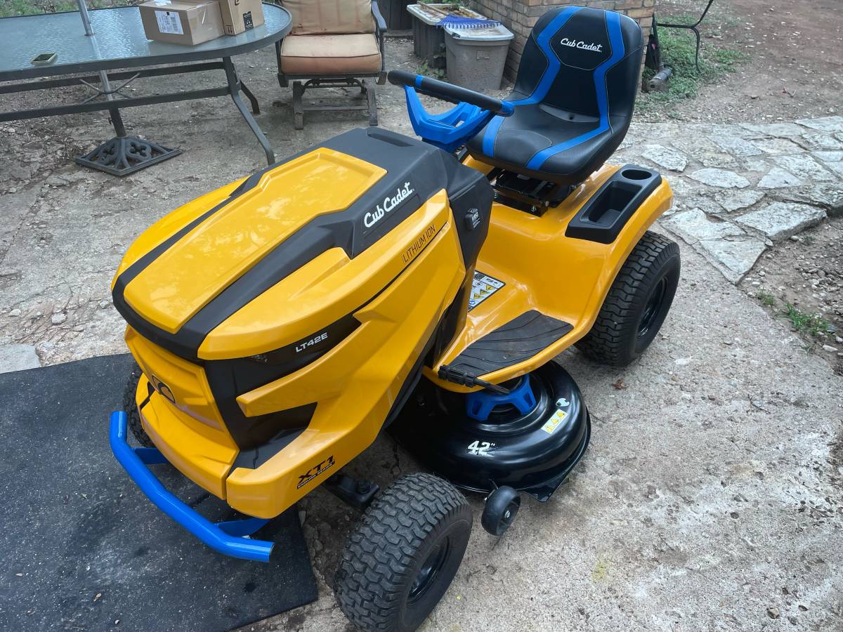 In like-new condition with only 4.5 hours of use, this garden tractor is a high-performance, reliable 54v all-electric engineering marvel. Whether you’re environmentally conscious or just prefer simplicity, this tractor requires no gas, oil, belts, or filters. It operates quietly, eliminating the need for ear protection, and can be used at any time without disturbing your family or neighbors. The electric responsive transmission, forward and reverse foot pedal controls, and 5.5 mph forward and 3 mph reverse speed make it easy to operate. It also features a 42” heavy-duty reinforced 13-gauge steel cutting deck, mow in reverse feature, disc brakes, cruise control, electronic fingertip blade engagement, deluxe high-back seat, bright LED headlights, and a heavy-duty steel front bumper. With up to 1 1/2 hours of run time per charge and the ability to mow approximately 2 acres, this tractor is both reliable and innovative. It recharges in 4 hours and is equipped with Cub Cadet “turn tight technology” for easy maneuverability. This model retails for $5398 with tax.