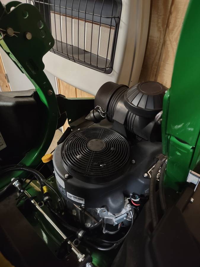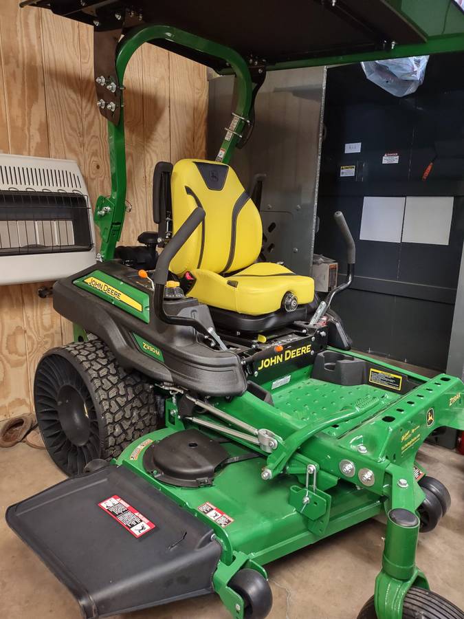 2021 John Deere ZTrak Z930 lawnmower, 60-inch deck, commercial grade. It has a canopy, solid front tires, tweel tires on the back, and a suspension seat. can cut grass from 1 inch to 5.5 inches high. The powerful 25.5-hp (19.0-kW) commercial-grade engine in the Z930 produces class-leading efficiency and performance. ZTrak Mowers feature a dual-element, canister-style air filter that is easily accessible from the rear of the machine without the use of tools. The filtration system draws clean air from above the engine, filtering out dust that can cause engine damage over time. When necessary, filters are extremely simple to replace. A pre-cleaner protects against contamination in dusty and dirty applications. Although this mower is fantastic, dad doesn’t need one this large for his small yard.