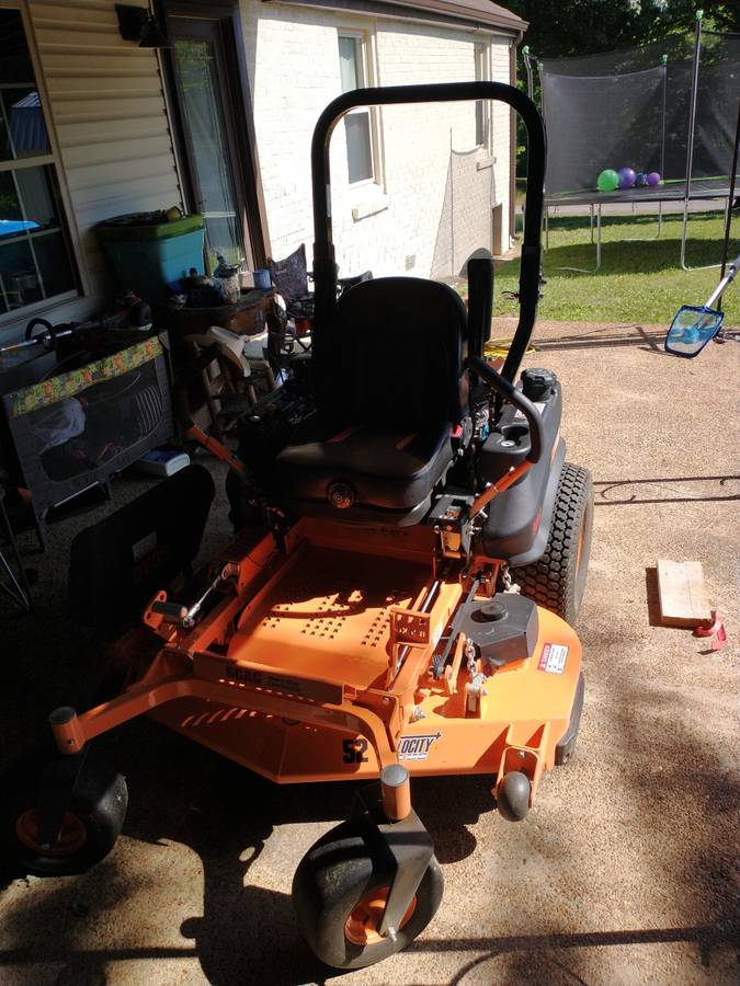 I bought it fresh new last year and used it on my one-acre lawn. Kawasaki 26hp EFI, 2021 model, 14.2 hours, hardly even broken in. I recently purchased a stand-up mower and am considering selling this one. I am not in any hurry to sell and may even keep it if someone offers me $10,500. Always keep it covered. Have the chute blocker ($355) but not yet installed, as well as the ball hitch mount and ball ($55).
