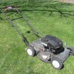 Craftsman Self-Propelled Mulching Lawn Mower, measuring 21 inches, is available in a sleek black color. It is equipped with a reliable Briggs & Stratton OHV 4 stroke gasoline engine, featuring a primer bulb for effortless starting. The mower boasts a positive self-propelled rear wheel drive, along with an EZ Walk variable speed drive system, ensuring convenient maneuverability. Its large 9-inch diameter wheels are equipped with ball bearings for smooth operation. Additionally, each axle can be easily adjusted to the desired height with just one hand.