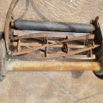 This is a vintage mower, hand pushed reel type, made by Henley Lawn Mower Company, the “Airway” model. This old push mower works great to mow the grass, has plenty of rust and it is cosmetically impaired. It could use any tinkering but should work as it is. Often, when you back up, you make that scratching noise. Maybe you just need some change or even some oil? pretty quiet, also no gas or oil, almost no maintenance problems to contend with such as a gas mower. Smaller lawns are expected to work perfectly. Will try to deliver if needed for a small additional charge, varies with distance.