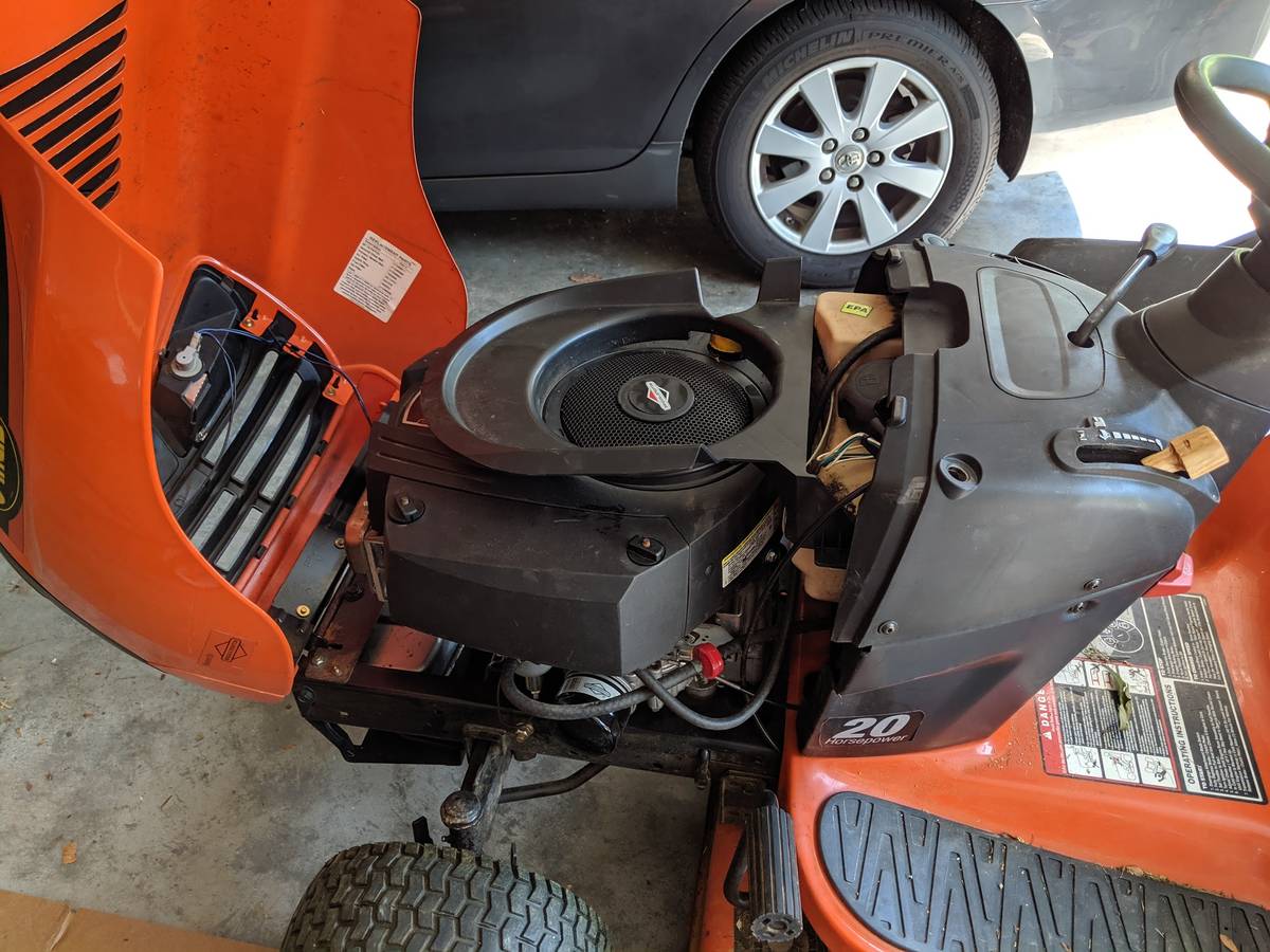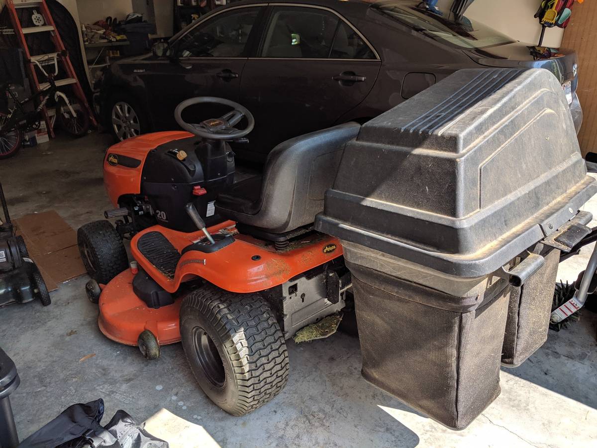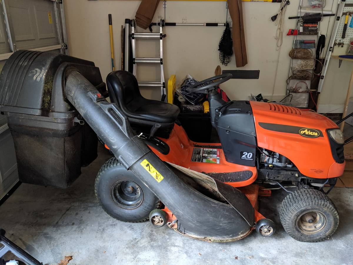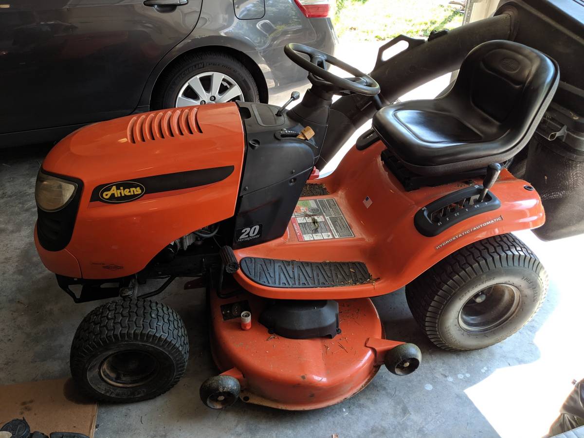 Ariens twin-blade 46 inch riding lawn mower with 20 hp Briggs and Stratton engine. New purchased in 2012. Also attachments for the back bagger and the spike lawn aerator. Battery has been rebuilt in 2018. In very good condition, the body and attachments, the engine is not turning over-not sure why. Running stopped in May 2019. Owner does not need mower riding anymore, no reason to repair it. Great purchase for someone who can repair tiny machines or parts and accessories.