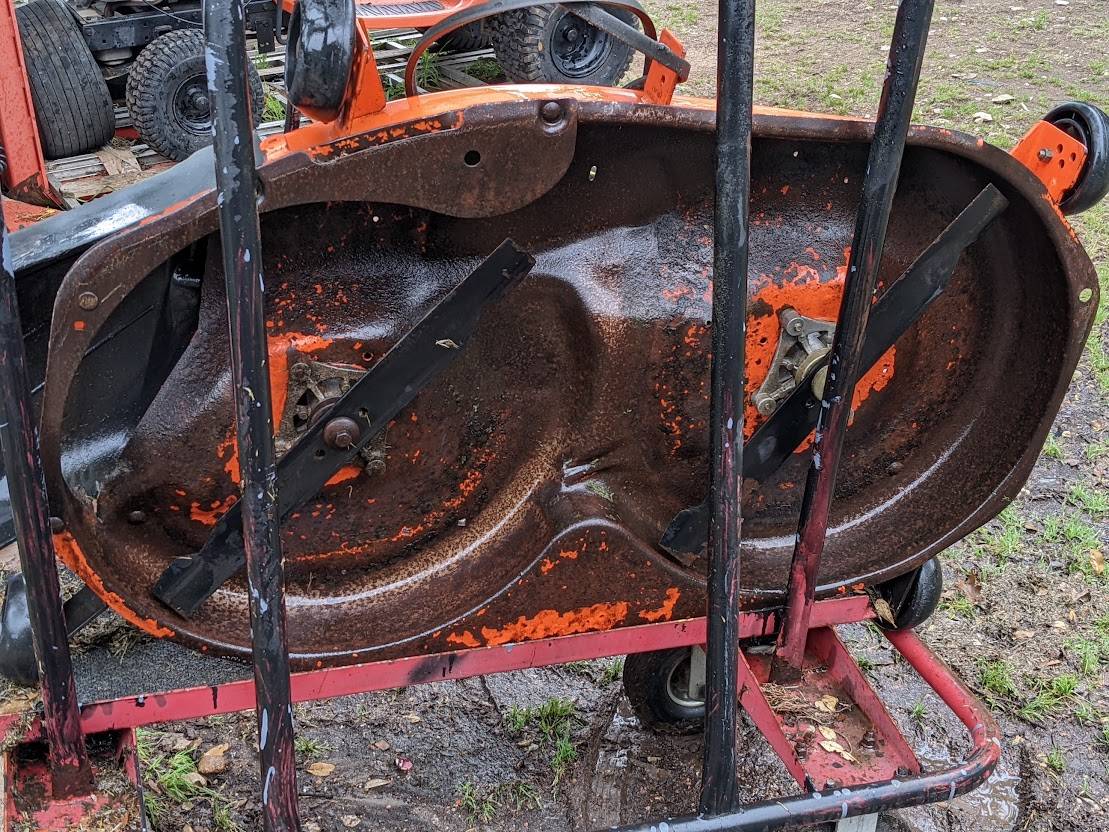 This mower comes with a 6-month warranty on the engine, transmission, battery, and cutting deck. Trade-ins are welcome, and the seller has been providing warranted used mowers for over 10 years. The mower has hand speed control, which some people may prefer.