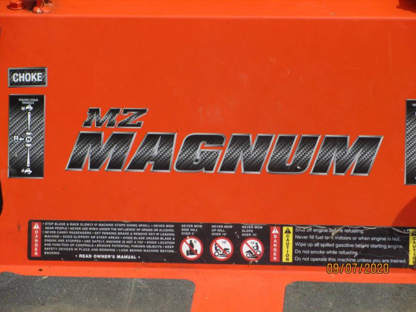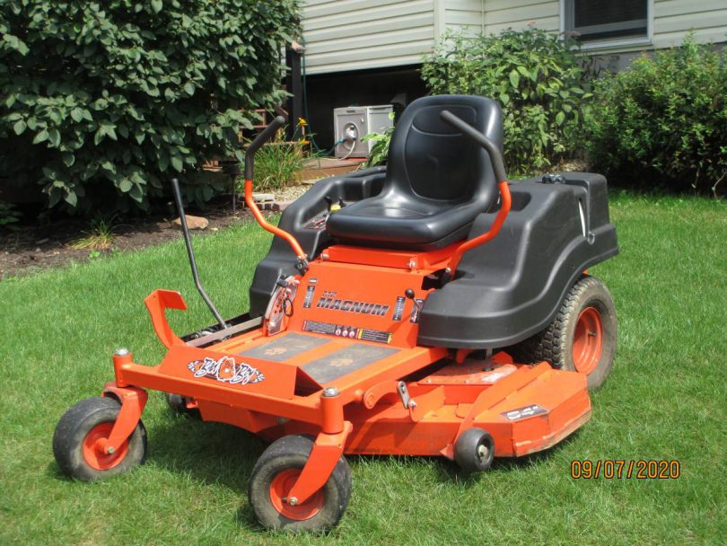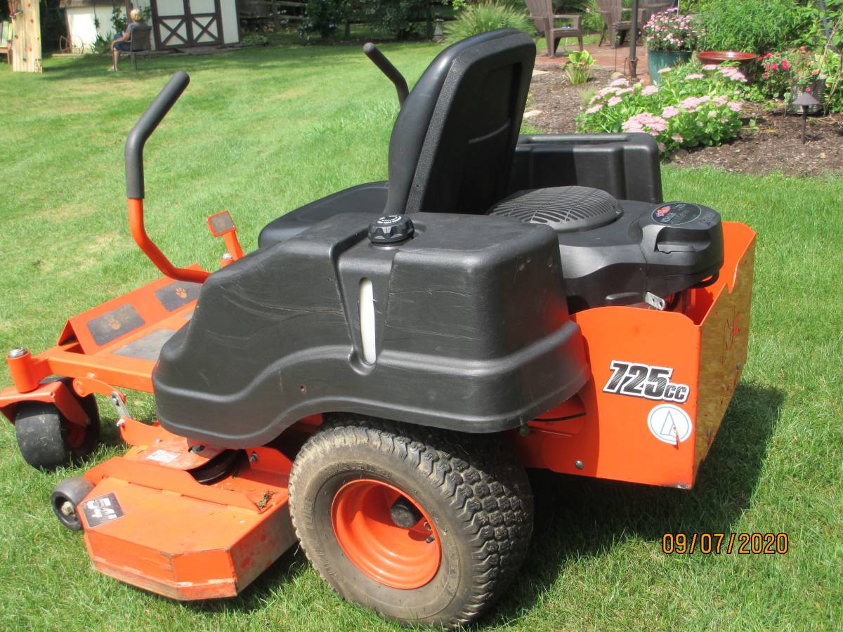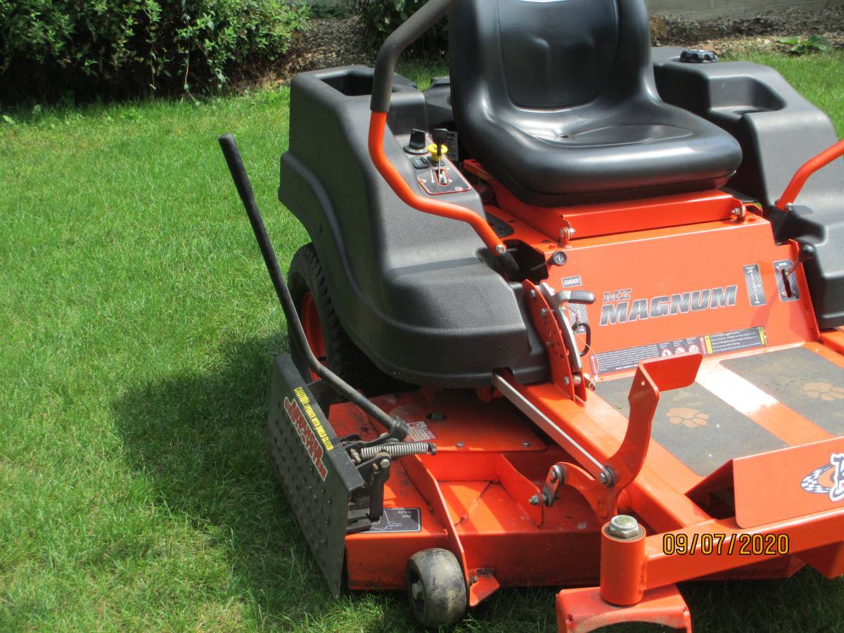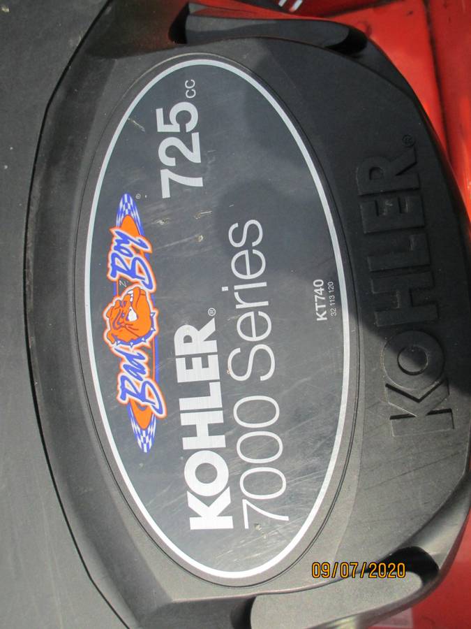 Bad Boy 54 Inch cut zero turn mower with 336 hours in very satisfactory quality, 726cc Kohler machine (22hp), it was serviced with NEW Battery, oil change, fuel filter, air filter, gas filter, oil checked in both transmissions. I purchased this and the wife doesn’t like it and she likes to cut lawn so it goes $2000.00. This is a very cool mower. I looked at a lot of bent out mowers before I bought this. I can send locally (15 miles) free more may cost a little bit more than that.