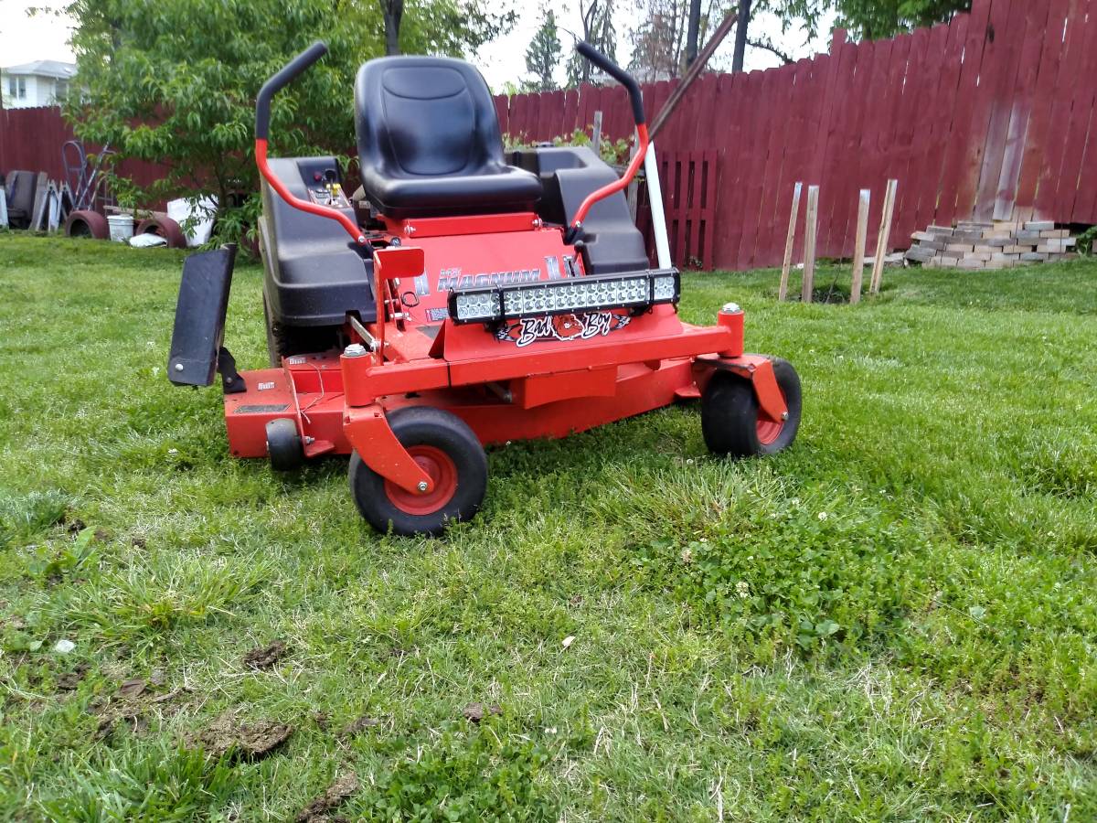 High quality Bad Boy MZ Magnum 54″ Zero Turn Mower only 139 hours on it, runs and cuts great. The all-welded solid steel roof, made of durable 7-gage steel with reinforced edges, features a baffling system to optimize airflow for higher grass lift and cleaner cutting. For greater stability the frame rests on a lower center of gravity.