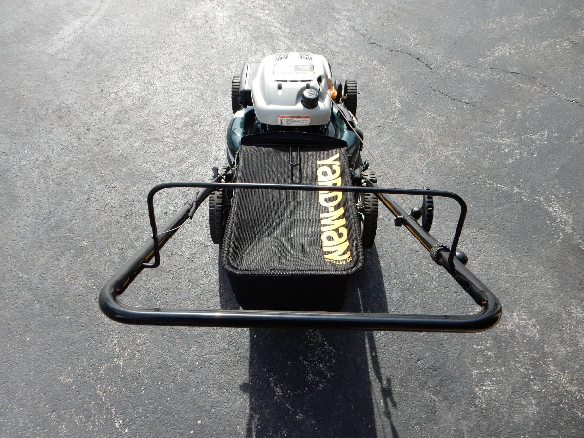 This MTD Yard-Man push mower is in excellent condition, with a well-maintained, sharp blade and a grass catcher that’s like-new. It’s a good runner and has been rarely used, so the mower deck is free of clippings and there’s no rust. The manufacture date is 2011. A comparable new item would cost between $285 and $325. Please note that this item is available for local pickup only.