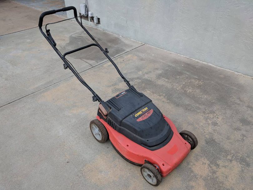 Hot, sweaty, covered in grass clippings and chugging water like it was going out of style I hit the computer. I remembered I’d seen a battery powered “cordless” lawn mower at a Black and Decker shop years before when I’d had a power drill cord replaced. Do they still have them, I wondered?