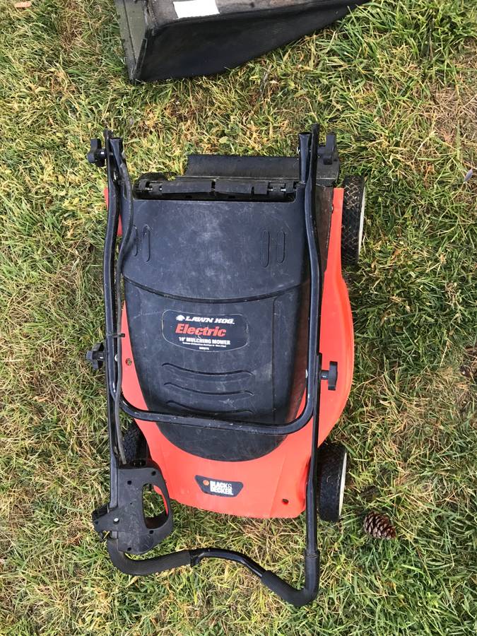 Electric Lawn Mower by Black and Decker. Works fantastic. When not in use, the bag and the handle fold flat for easy storage. No gas needed. Starts at all times! Simple to drive! With a cutting width of 19-inch, the Lawn Hog Electric Mower is built to handle lawns up to 1/4 acre. A corded machine with a lot of barriers is not ideal for yards. The mower is equipped with 7-inch front wheels and slightly larger 8-inch rear wheels. Generally, corded mowers are used to mow reasonably flat yards.
