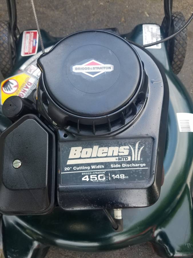 Bolens 20 inch Cut Walk Behind Lawn Mower 11A020L765 for sale. Powered by Briggs & Stratton 4.5hp / 148cc. Featuring side discharge. This used mower have had oil changed, sharpened blade, brand new carb gaskets. Runs & Cuts Perfectly.