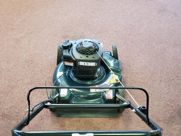 Bolens 20-inch 125-cc Push Gas Lawn Mower with Briggs & Stratton Engine. It is in good state to use and it operates well. It comes as if they were pictured. The Bolens 20 in Push Mower is an easily manoeuvrable, versatile, spacious machine. Features include a 125cc Briggs & Stratton engine, deck size of 20 inches, height adjustment of 3 positions and front and rear wheels of 7.’