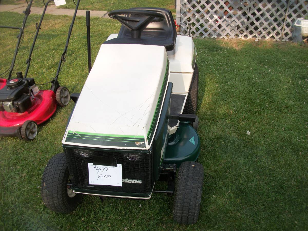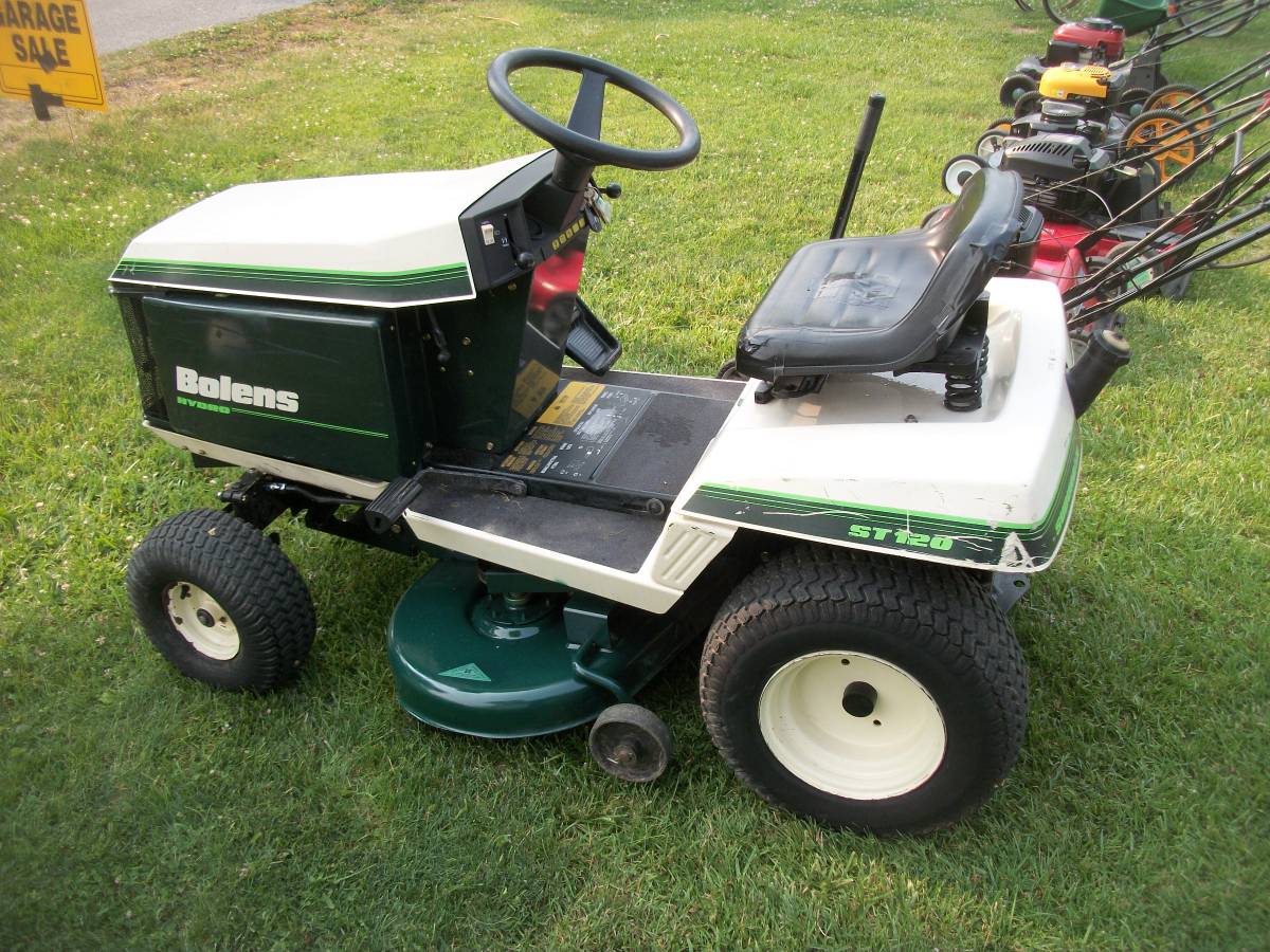 Bolens 3212H ST120 for sale. It features a 12 H.P. Briggs engine and a 36″ cutting width. The deck is equipped with an electric PTO. Recently, I have replaced the oil, carburetor, air filter, and spark plug, ensuring optimal performance. I believe it originates from the 1970s and comes complete with the owner’s manual and parts book. While it occasionally hesitates for a few seconds, it doesn’t impact its excellent running condition or its ability to mow. All features, including the headlights, are fully functional. It operates on a hydrostatic transmission, offering seamless forward and reverse movement with a single pedal, eliminating the need to stop and shift gears. Additionally, it boasts a cast iron front axle with grease fittings, along with fresh grease in all the fittings, including the wheels.