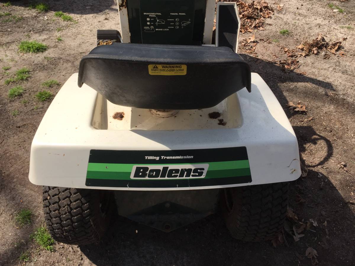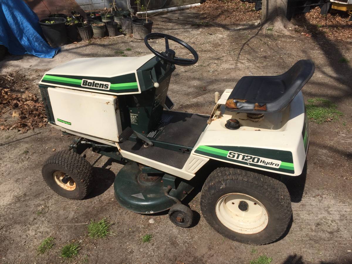 Bolens ST120 HYDRO tractor with a 36-inch mower deck. Engine: 12 HP Briggs & Stratton Industrial Commercial. It has an ultra-balanced cast iron bore and electronic ignition. It has an electric start. Reverse gear on an automatic transmission. The motor runs flawlessly, with no leaks or noises. TILLING HYDROSTATIC Transmission is trouble-free and functional. The mower deck is quick and quiet. Belts for the drive and deck are newer. It requires a battery but will work with a jump. All of the safety switches function properly. Always garaged and well-kept. Manuals are provided.