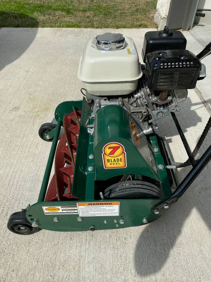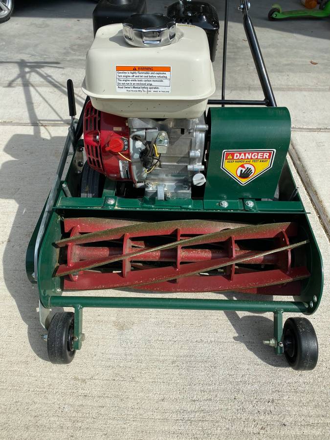 Like new California Trimmer RL207HC-GX120 Reel Mowers for Sale. I bought this lawn mower a few months ago, and used it only three times. It works great, but I wanted to use a standard lawn mower for my home yard. This is definitely more of a skilled use. The only issue I had was that the left front wheel came off but was easily reconnected.