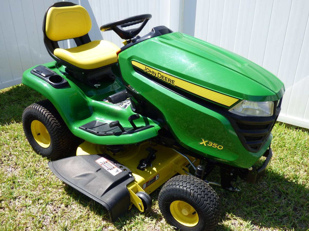 Used John Deere X350 with a newer 21.5HP KAWASAKI engine, not the older 18.5HP. Only 20 hours of use. Warranty valid for up to 300 hours. In excellent condition, both inside and out. No towing or hitch usage. Recently upgraded to a larger mower.