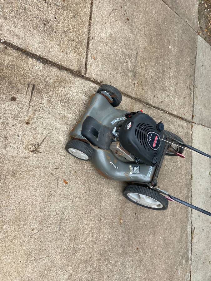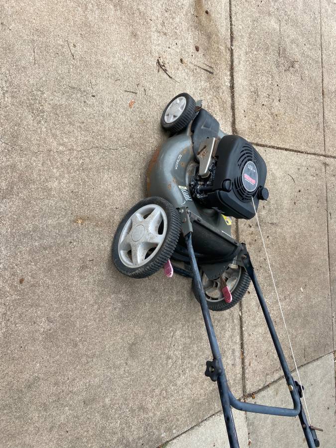 Craftsman 917.378490 21″ mulching push lawn mower with 190cc briggs quantum series engine, 6.75 hp, large rear wheels. It’s a very powerful mower. Recently tuned up and ready to mow. Not perfect, but works and runs great.