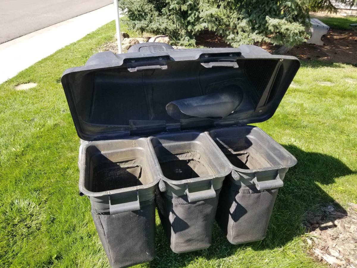 Does have a triple bin bagger attachment to pick up grass or leave this fall.