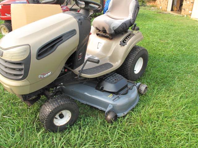 Available for purchase: Refurbished Craftsman DYS4500 riding lawn mower with a powerful 24hp Briggs & Stratton engine. Features hydrostatic transmission with cruise control, a 54″ cut deck that has been fully refurbished. Recent maintenance includes a thorough carburetor cleaning, installation of a new air filter and pre-filter, replacement of the fuel filter, oil and filter change, and installation of a new spindle for the deck. Equipped with sharp G3 Gator blades (model 95-605) that have been expertly sharpened. Additionally, a new battery was installed in May 2023. This mower starts easily, runs smoothly, and provides a clean cut. Comes complete with a 30″ x 45″ lawn cart. Delivery options are available.