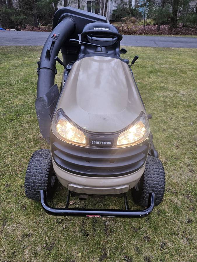 For sale is a Craftsman DYS4500 Special Edition 80th Anniversary Hydrostatic 42″ cut riding lawn mower. It features automatic lever-controlled infinite forward and reverse motion, making it suitable for hills. Recently upgraded with a powerful 17.5HP OHV V-Twin Kawasaki engine. Starts, runs, and idles smoothly. Well-maintained with a new battery, synthetic oil, and air filter this season. Includes a full bagging system in excellent condition. The wheels, tires, and deck are in good shape. Approximately 160 hours of use.