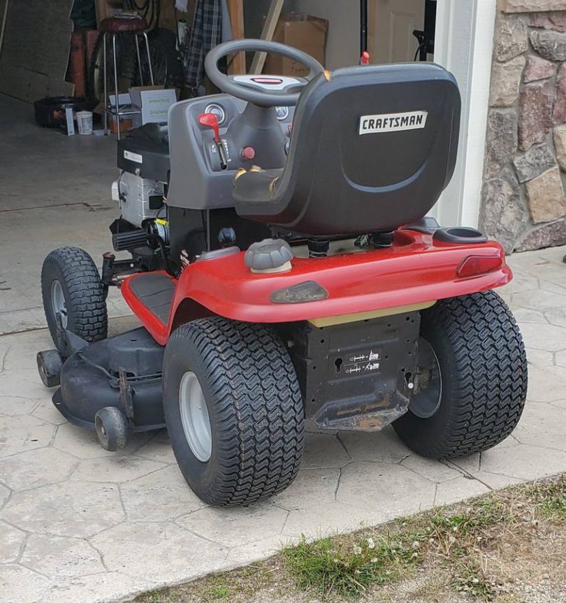 Craftsman riding lawnmower (DYT4000) with 48 “cutting deck. I have a fresh mulch cover expected to come in the next day or two for it as it is missing in the picture. Its other general maintenance has been apparently done (new air filter, oil filter, oil change) and also new tires around there, new fuel line and a few other small fixtures (leaky gas tank seal replaced, one of the air cleaner screws replaced, one of the air cleaner screws replaced.