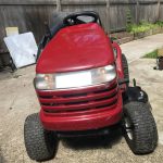 The tractor has a cutting length of 42 inches with an adjustable cutting height of 1 1/2 to 4 inches. The tractor also has a 16-inch disk brake turning radius. There is also a cup holder and adjustable seat in the 518-pound red and black tractor. The turf saver wheels will assist to save the deep ruts of your lawn.