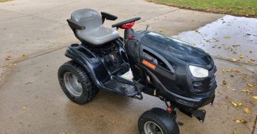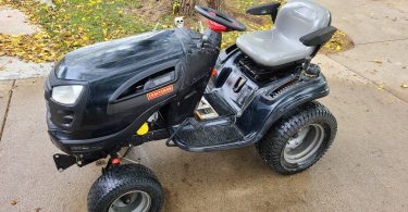 This is a used Craftsman GT6000 26hp riding lawn mower. With recently sharpened gator mulching blades, it has a 54 inch deck. It’s currently 385 hours. A brand new battery as well. This was a good machine, and I’m upgrading it. A craftsman snow blade and tire chains not pictured but also included.