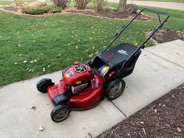 Self-propelled Craftsman 3 in 1 lawn mower. Just available as we’re moving out of town soon, and it is marketed to sell quickly. It’s five years old and in great condition. I just changed the oil this weekend, and sharpened the blades in the spring. The bag is detachable if you don’t want to carry a bag, and then you’re going to mulch.