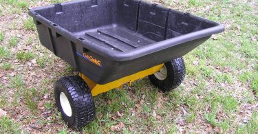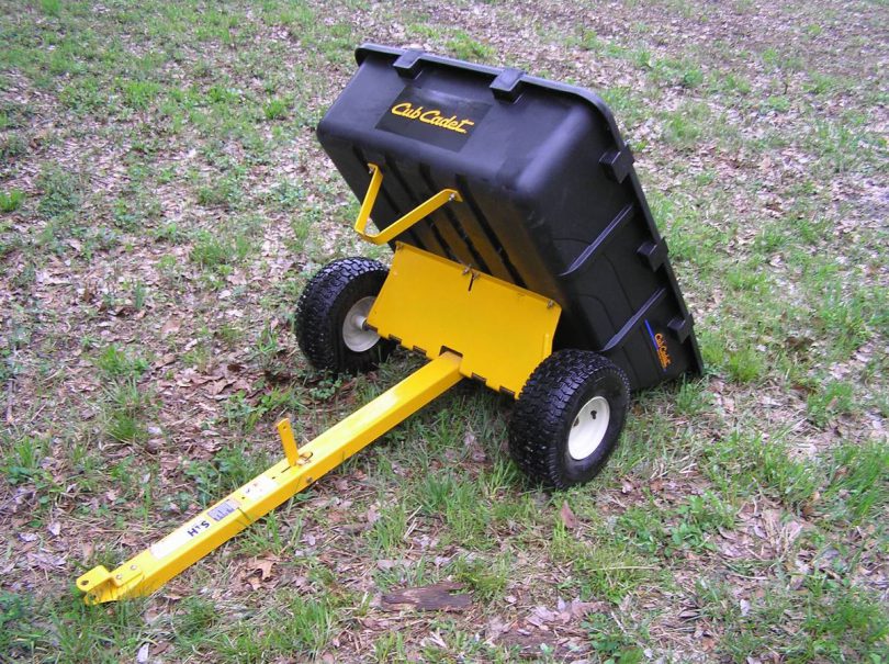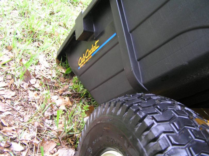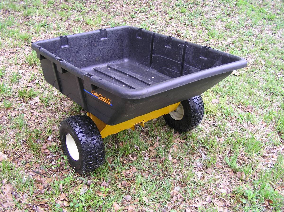 Here’s my Cub Cadet stakeside dump cart, or dump trailer. It is like new and it’s in great condition. It has always been stored from the weather inside. It has some scuffing from prior use on the inside of the cart.