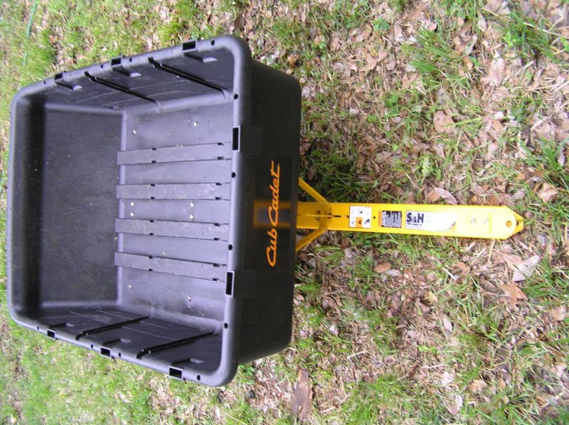 There are pockets for 1X3 stakes around the edge of the cart, as well as 2 grooves inside, plywood divider sides of the cart. Last month I purchased a Cub Cadet mower and it came with that cute little dump cart. It’s not necessary for me, so it’s for sale. It’s a ten cubit. Ft. cart, 650 pounds maximum capacity. If you don’t have a truck, I can deliver it to fields close Monett free of charge if you purchase this cart. New ones are four hundred dollars.