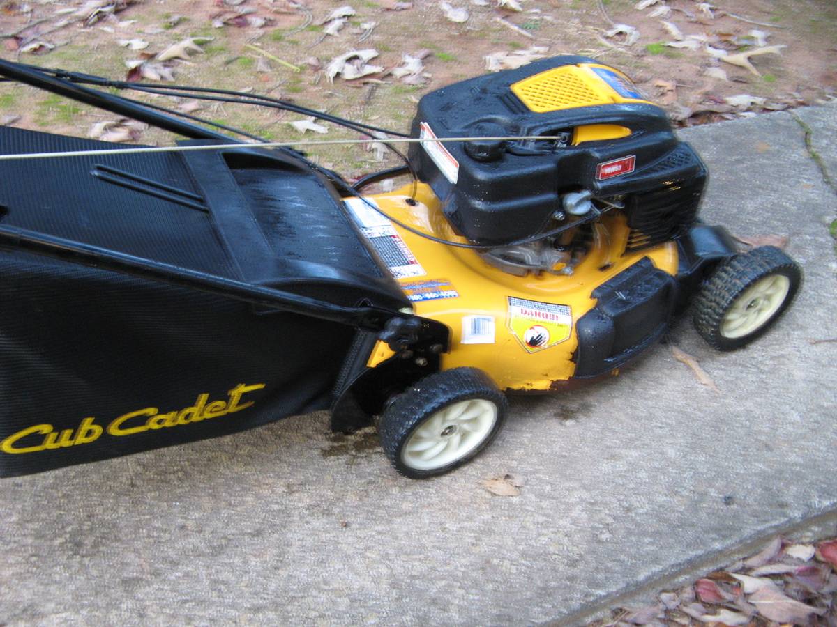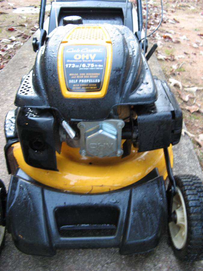 I have a fantastic, one owner, cub cadet self-propelled mower featuring a 6.75-foot-pound/173cc gas-powered engine. This is a very reasonable price for this mower. Mainly because of the time of year. The quality of the mower is excellent. Remove the bag, and then you can mulch the grass. Adjust the cutting height by moving a lever instead of having to adjust four.