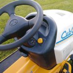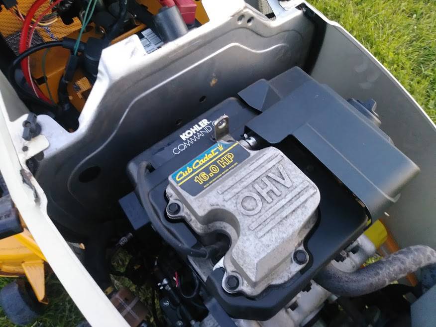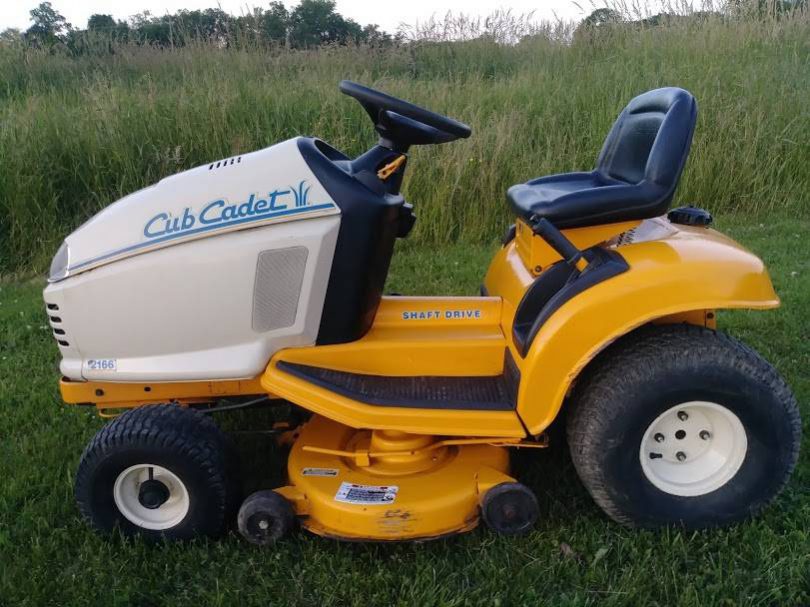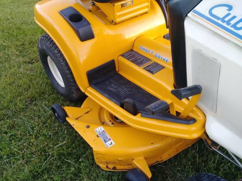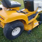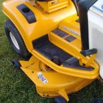This is a hydrostatic tractor from Cub Cadet. The engine is a 16hp Kohler Command and the cutting deck clears a 42″ route. There are 490 hours on the meter. For those unfamiliar with these, they are not like the riding mowers you find in a Lowes or Home Depot. They were about $3000 machines when they were bought new from a Cub Cadet dealer. They are shaft driving with hydrostatic trans axles.