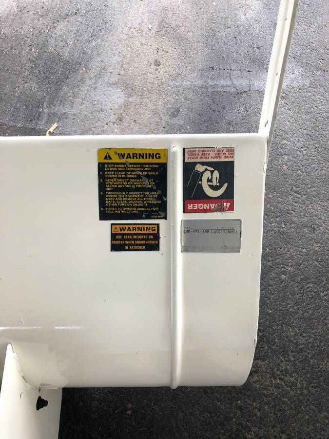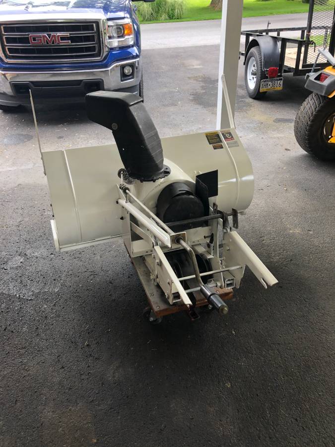 Cub Cadet 45 “Snow Blower Attachment off 1864 CC All components to be mounted on your Cub tractor. This unit worked when I removed it this spring to install mower attachment. Part Number 190-451-100 All deal is Face to Face in money only.