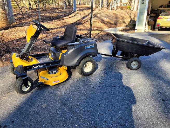 For $1,295 you can get a Cub Cadet RZT-S ZTR Riding Mower with a trailer. (As if new.) I purchased it brand new and only used it for one season. It worked well for mowing a little more than an acre with a slope. It’s extremely quiet. Holds a charge extremely well. The specifications are listed below.