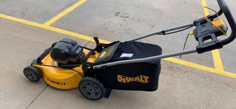 DEWALT DCMW220P2 20 in. Push Lawn Mower powered by two 20V batteries; compatible with FLEXVOLT batteries High-output brushless engine improves3-in-1 high overgrowth torque: mulching, bagging, and 20 in heavy-duty rear discharge. Metal deck Single lever height adjustment varying from 1.5 in. In 3.4. Folding handle and lifting handles for easy transport and compact storage For maintenance of commercial and residential properties Ideal for cutting yards of up to 1/4 acre Ideal for combining with high capacity 20-Volt MAX DEWALT batteries or 60-Volt FLEXVOLT DEWALT batteries for prolonged runtime Delivers runtime ideal for keeping yards of up to 25 minutes on two DCB205 batteries incl.
