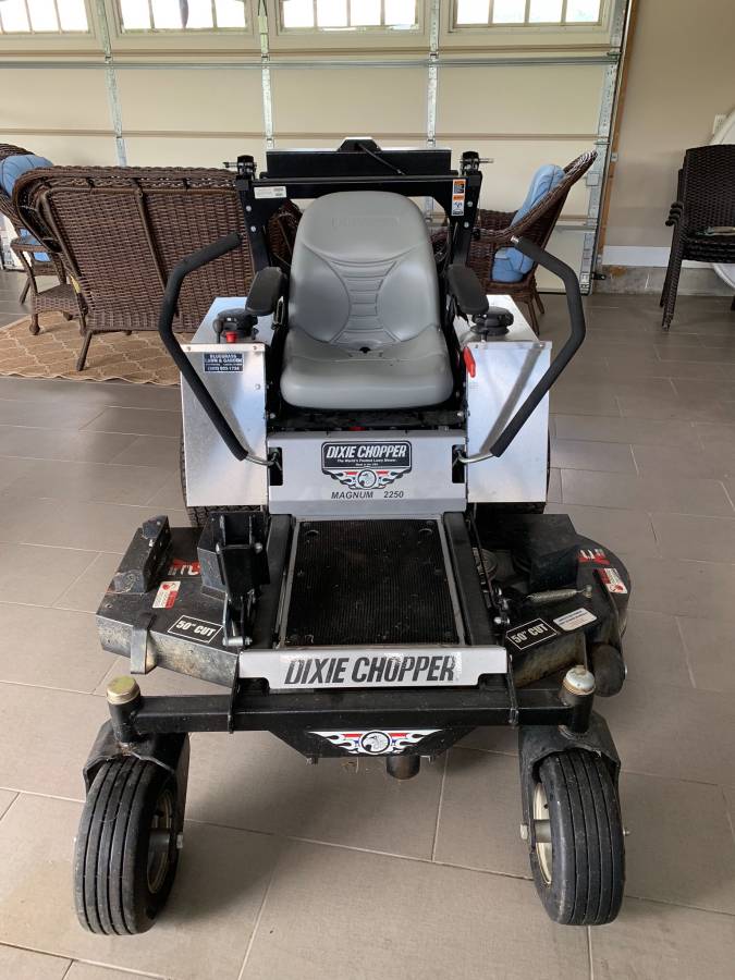 Zero turn Dixie Chopper 2250 commercial mower. Excellent low hour condition. Used to cut our lawn for 4 seasons, never used commercially. This is a mower that was very well maintained. Always keeping the garage. We’re downsized and don’t need the mower anymore. Kawasaki FS651V, 50 inch cut, first start key. Dual tanks, all required safety equipment