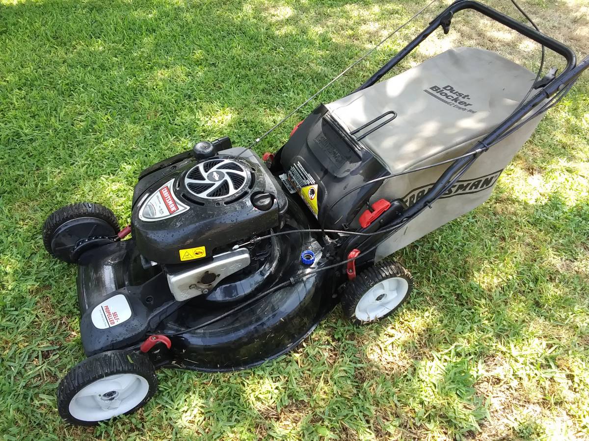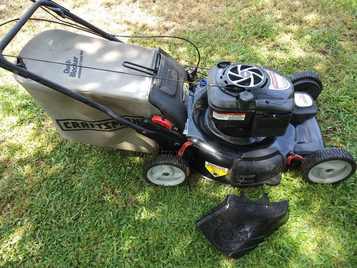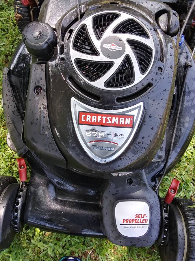 Very good condition Craftsman Platinum 22″ Self-Propelled Lawn Mower with Low Hours. Works perfectly – starts on the first pull. Includes a grass bag and a side discharge chute for a 3-in-1 operation. The 675 ft lbs gross torque Briggs and Stratton 190cc Platinum series engine is powerful and efficient.